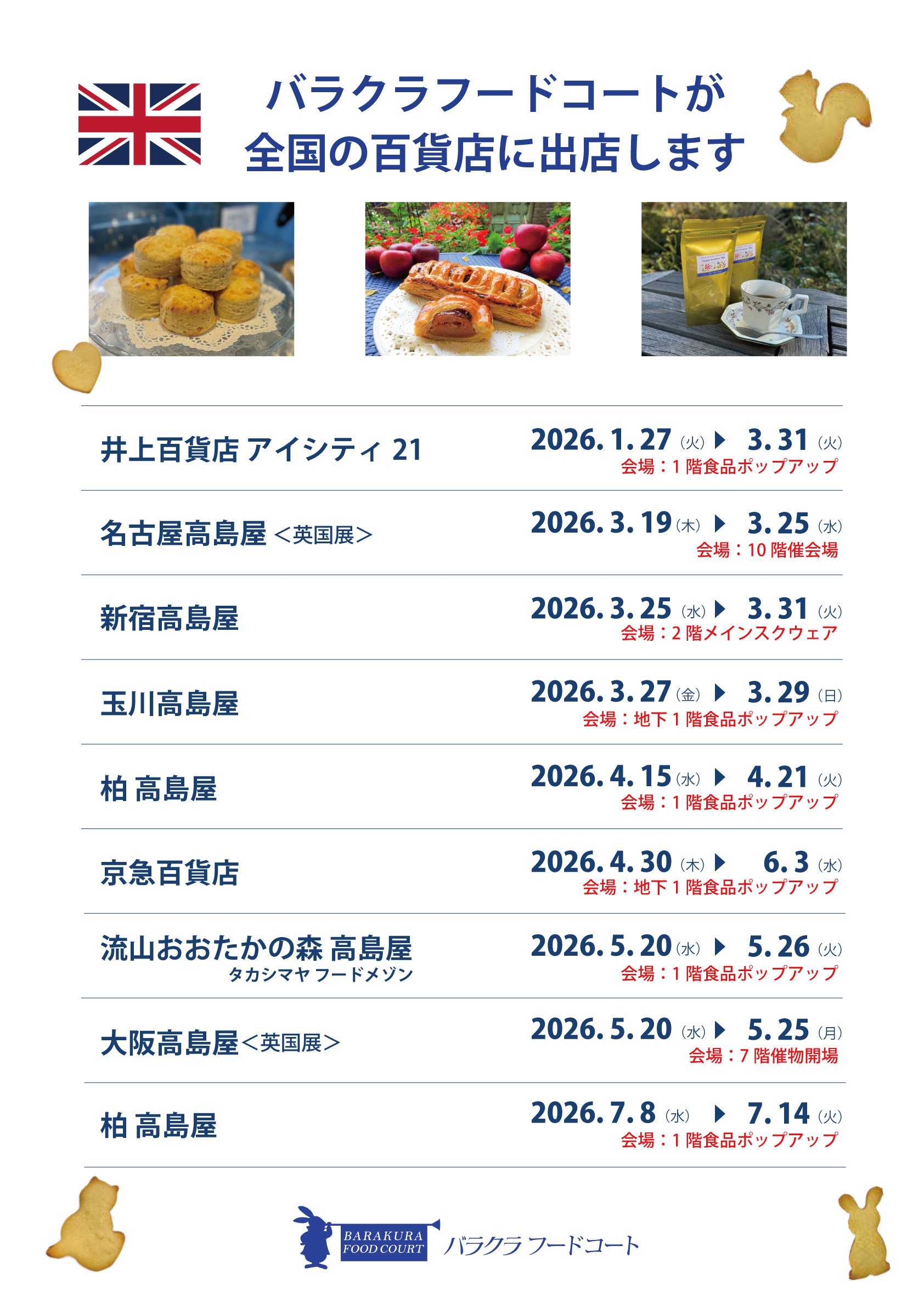 英国で昔から伝統を受け継ぎ守り続けているお菓子をバラクラのパティシエが一つ一つ丁寧に焼き上げる英国伝統のホームメイド焼き菓子が並びます。《手作り》と《素材》にこだわったバラクラのこだわりの英国の味をぜひご賞味ください。