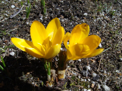 お庭に春がやってきました。雪の下からクロッカス、スノードロップが咲き始め、