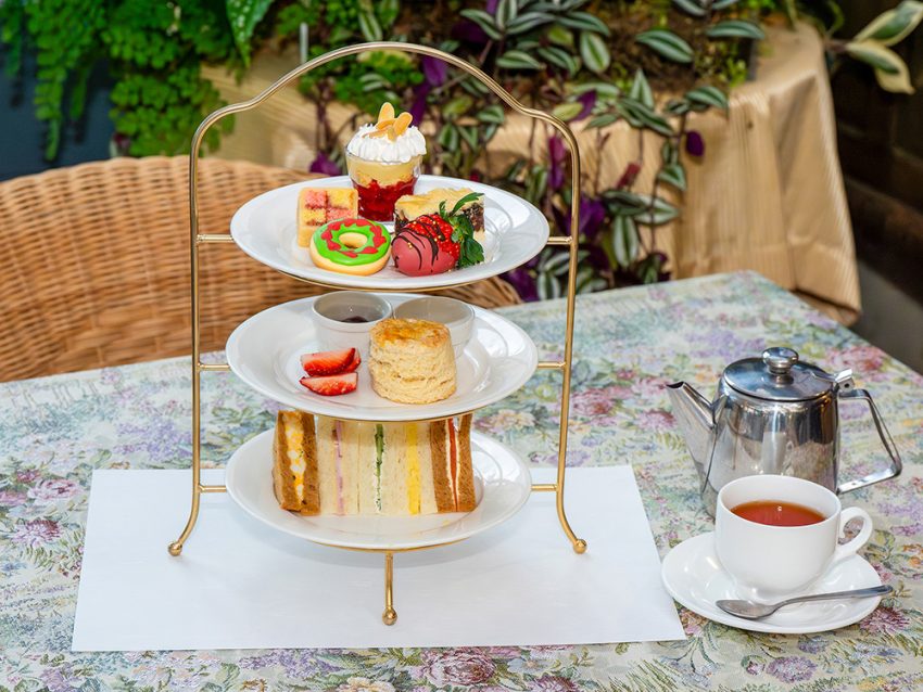 人気のアフタヌーンティーセット(3段プレート)にセイボリー(お食事)プレートがついたランチ