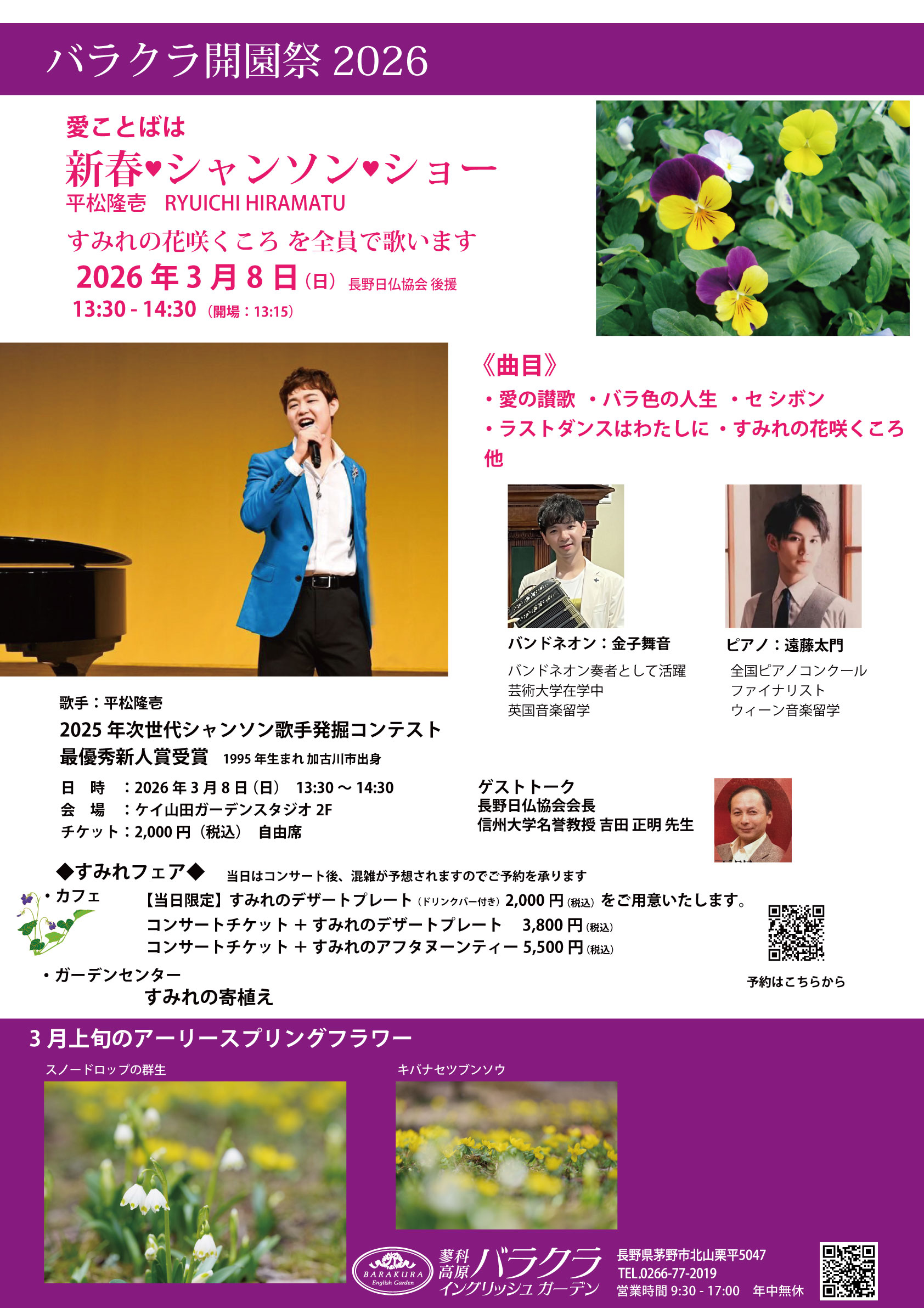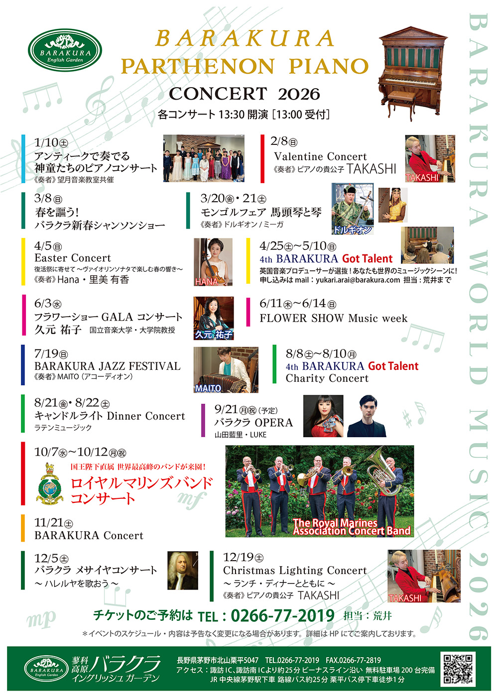 チケット:6,000円(コンサートのみの場合:2,000円)※別途、入園料必要