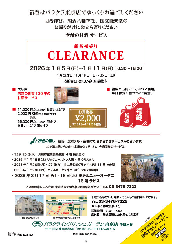 新春初売り CLEARANCE 2026.1/5(月)~1/11(日)