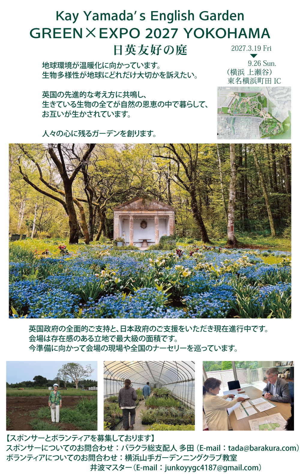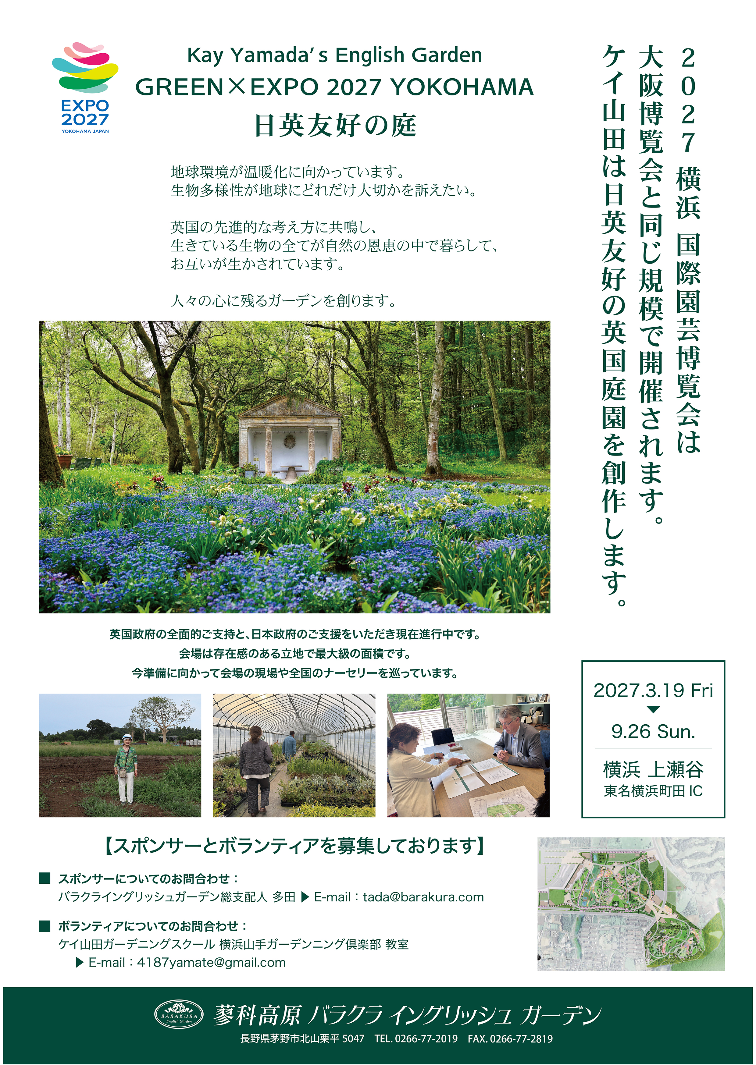 ケイ山田(蓼科高原バラクライングリッシュガーデン 代表 山田裕人)は、「2027年国際園芸博覧会(GREEN×EXPO 2027)」の国際出展ゾーン内に英国庭園を出展するはこびとなりました。