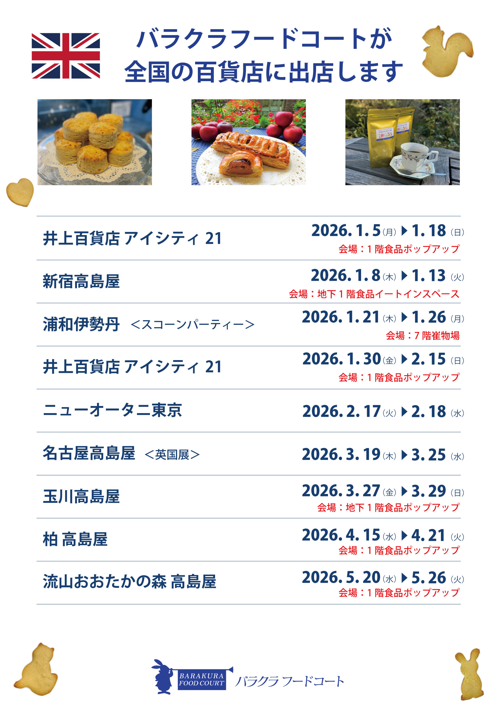 英国で昔から伝統を受け継ぎ守り続けているお菓子をバラクラのパティシエが一つ一つ丁寧に焼き上げる英国伝統のホームメイド焼き菓子が並びます。《手作り》と《素材》にこだわったバラクラのこだわりの英国の味をぜひご賞味ください。