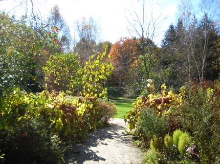 今シーズン初めの霜で、一気に霜枯れてしましましたが、庭の紅葉は深まり、赤や黄色の葉は太陽の光に照らされ、金色に光ってとてもきれいです。