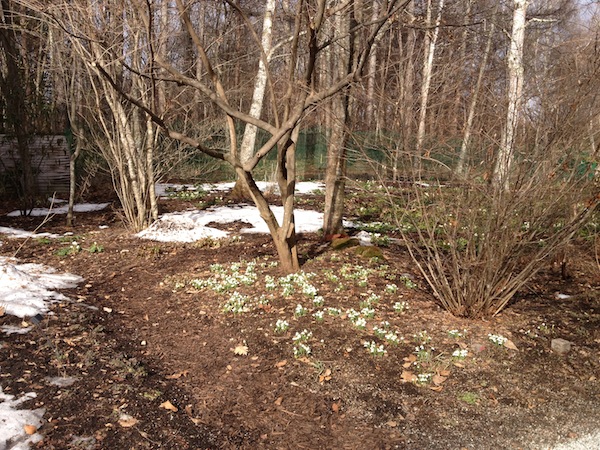 ついこの間まで雪がかぶっていたお庭の奥もすっかり溶けて変わりにたくさんの球根がそこかしこに芽を出しました。