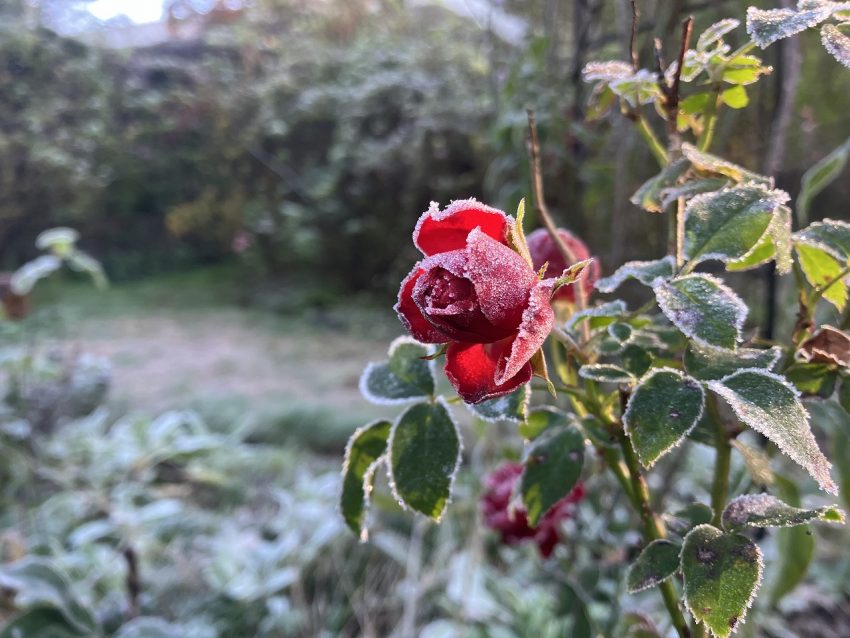 バラにも霜がついていました