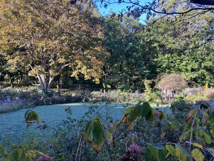 今朝のガーデンは0℃近くまで冷え込み、初霜の朝になりました。