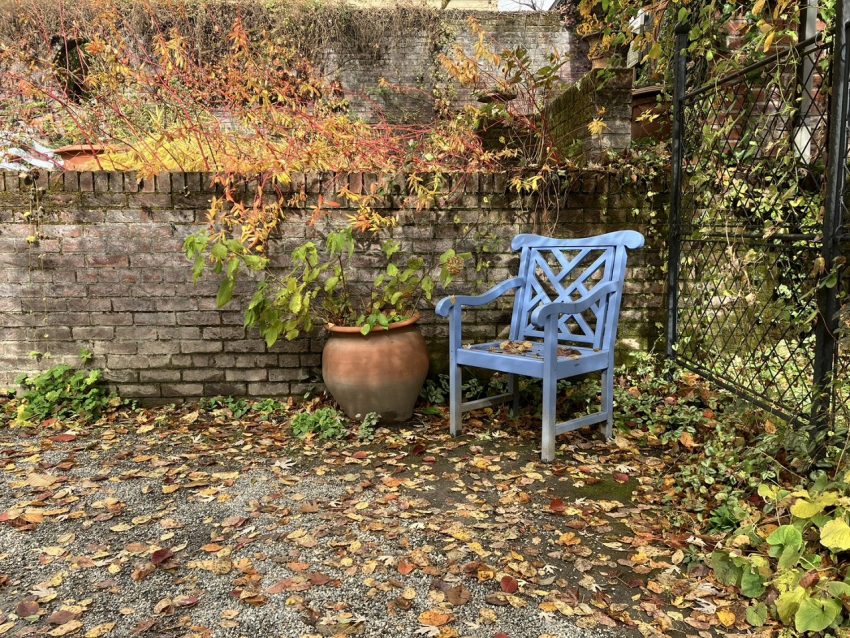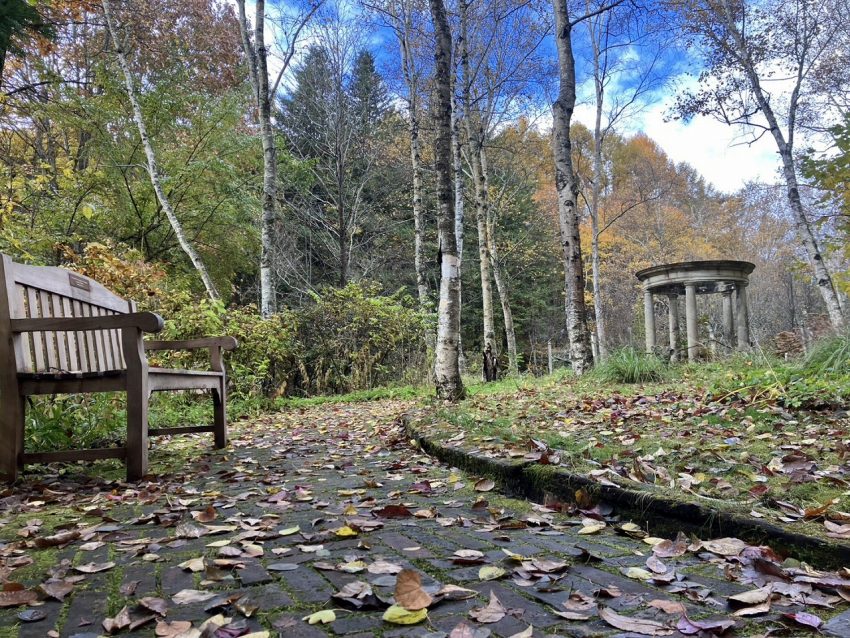 沢山の落ち葉がガーデンを覆う