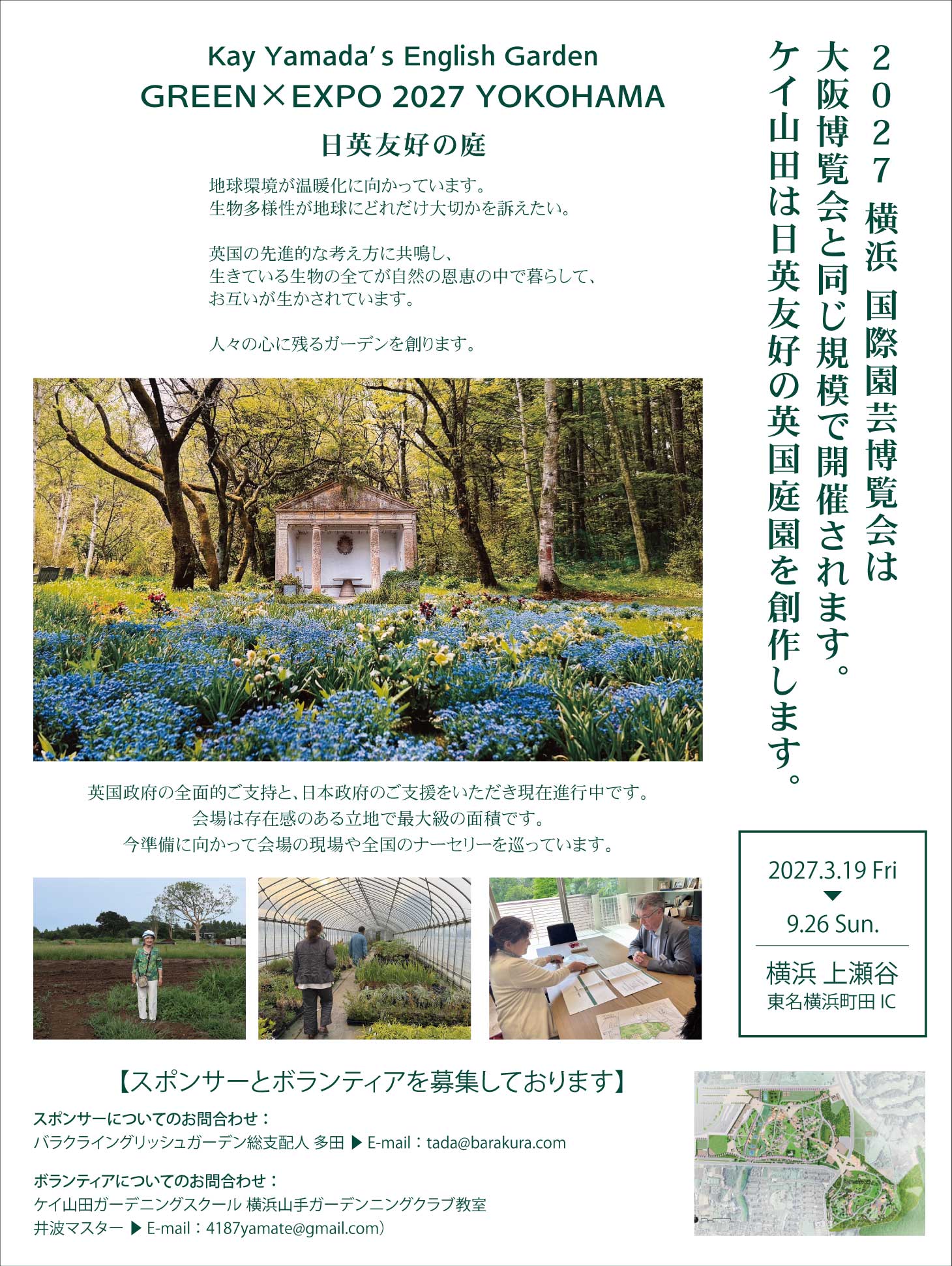 ケイ山田(蓼科高原バラクライングリッシュガーデン 代表 山田裕人)は、「2027年国際園芸博覧会(GREEN×EXPO 2027)」の国際出展ゾーン内に英国庭園を出展するはこびとなりました。